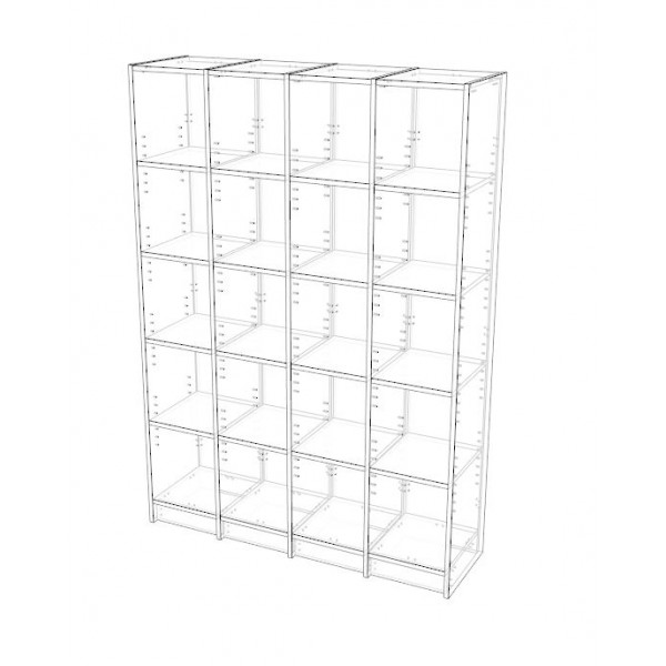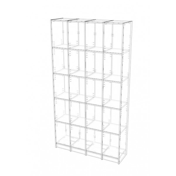- 4 Vertical sections with 4 Adjustable shelves in each section