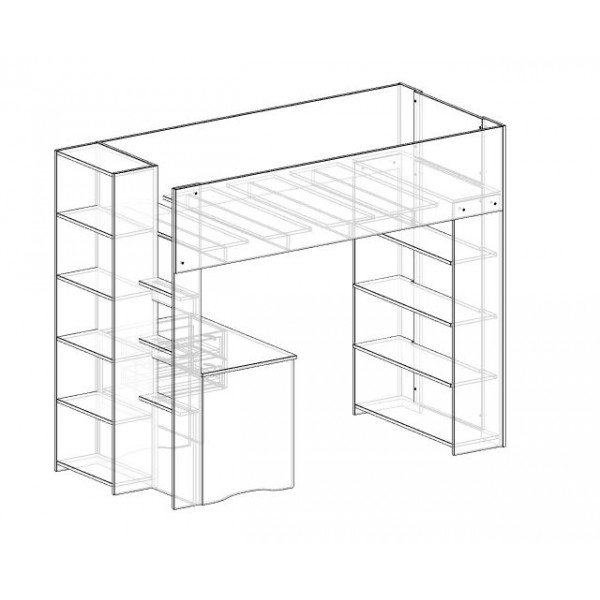 High loft bed with Open shelves & Optional 2 Drawer Desk