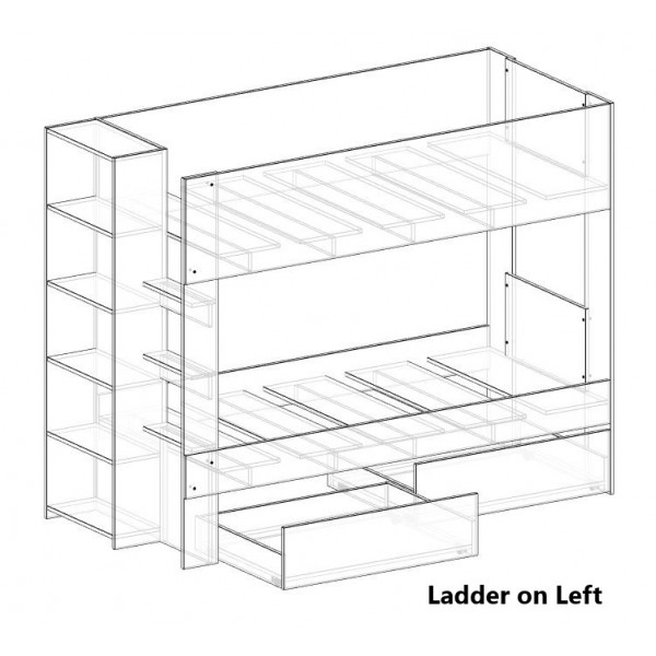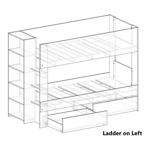 Bunk Bed with built in Bookshelf & optional trundle or drawers