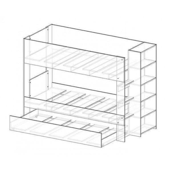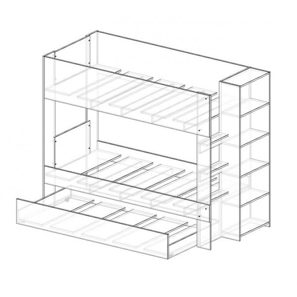 - With the trundle option this bed is like a triple bunk bed: with three separate single beds, 2 on the bunk and a third on the trundle!