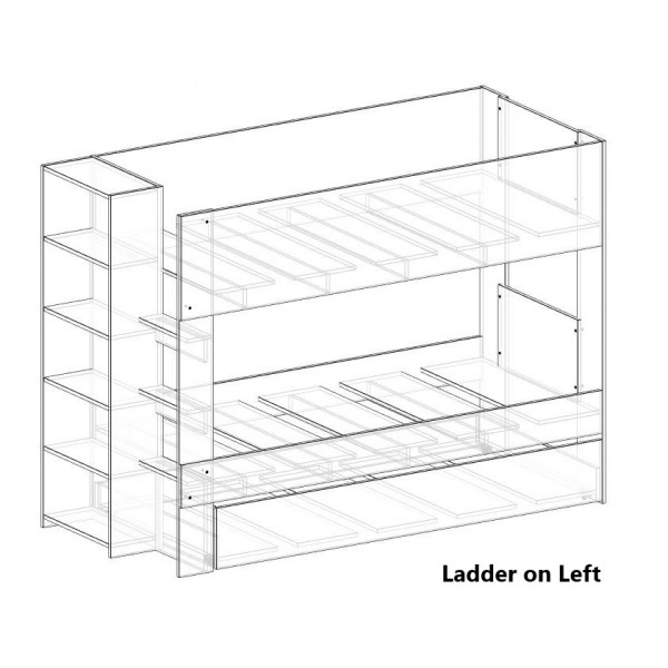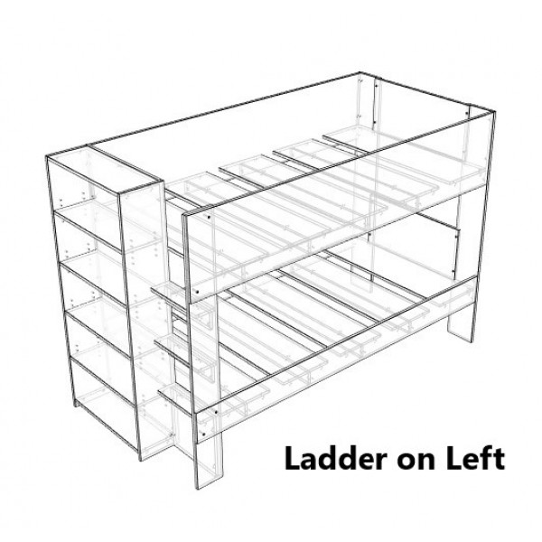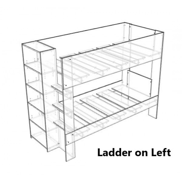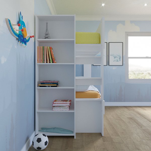 - Useful Built-in bookcase with 4 adjustable shelves ( plus top and bottom ), integrated into the end of the bed next to the ladder/steps