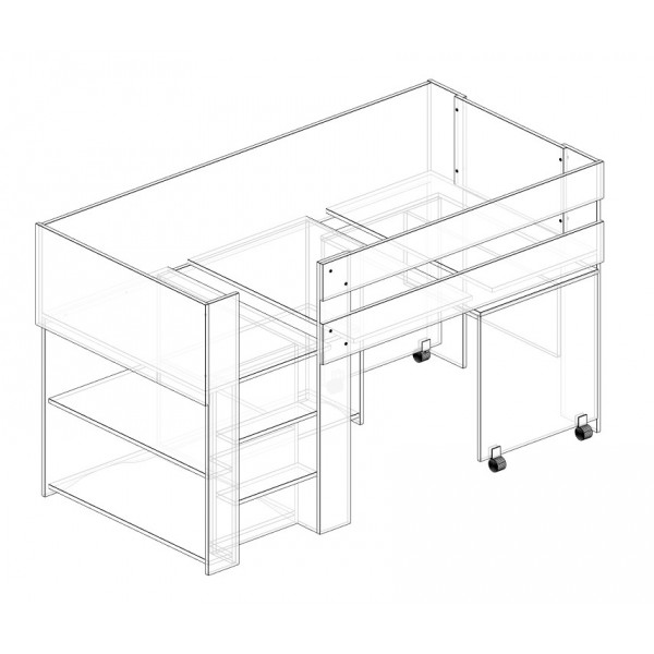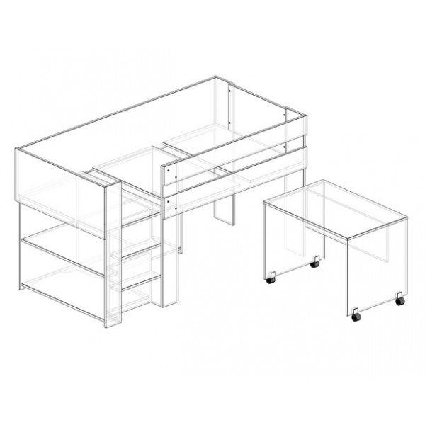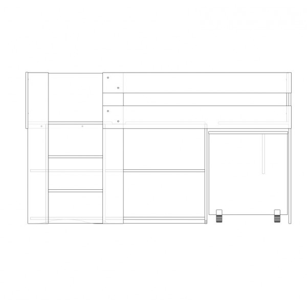Spacesaver Compact open shelves option to move under bed centre shelf to rear and change desk to 900mm panel ends